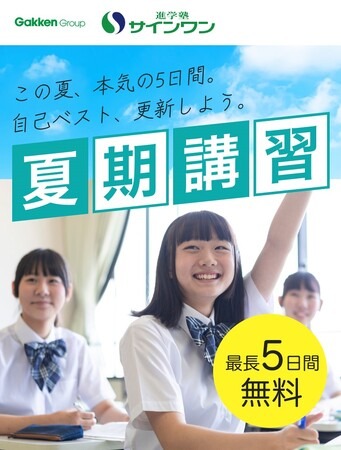 株式会社 学研ホールディングス(東京・品川/代表取締役社長:宮原博昭)のグループ会社、株式会社 学研スタディエ(さいたま市/代表取締役社長:亀谷眞宏)が展開する進学塾サインワンでは、7月24日(木)から8月29日(金)までの期間で、夏期講習会を開催いたします。
