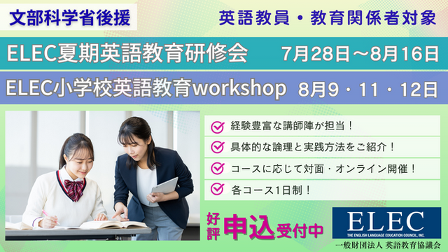 2025年夏期ELEC英語教育研修会(7/28 - 8/16)・ELEC小学校英語教育workshop(8/9・11・12)