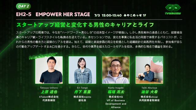 - タイトル:「スタートアップ経営と変化する男性のキャリアとライフ」- 日時:2025年7月3日(木)15:00~15:40
