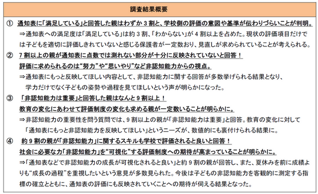 “努力”や“思いやり”など非認知能力からの視点を評価に求める親が多いことが判明。