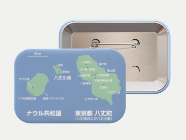 ナウル共和国政府観光局は、ナウル八丈島比較缶バッジ(980円/税込・送料込)の販売を開始しました。ナウル島と八丈島の面積を比較していただくことで、ナウル共和国への親近感を持ってもらうことが目的です。また、八丈島の知名度向上、八丈島のお土産品・贈答品としても貢献できればと考えております。