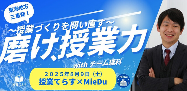 全国の教師が集い、学び合うオンラインサロン「授業てらす」は、2025年8月9日、三重県津市にて夏の対面セミナーを開催いたします。本イベントは、地域密着型教育プラットフォーム「MieDu」との共同開催。全国の教育観を揺さぶる対話が交差する一日となります。