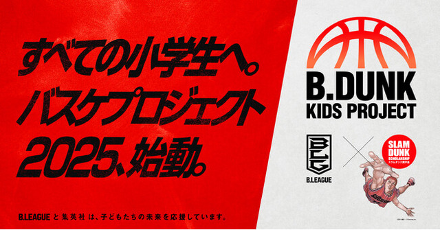 7/30(水)に「B.DUNK KIDS PROJECT 2025」として、漫画家・井上雄彦氏と株式会社集英社が共同運営している「スラムダンク奨学金」とB.LEAGUEが協力し、全国の小学生を対象に、未来のバスケットボール選手を育成するクリニックを開催します。