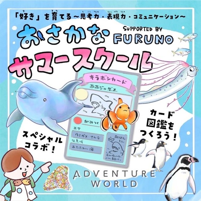 “誰もがキラボシ”という想いに共鳴し、イルカやクジラ、ペンギンなど多くの命と向き合うアドベンチャーワールドさんとのスペシャルコラボが実現しました。さらに今回で5回目となるおさかなスクールがついにリアル開催!