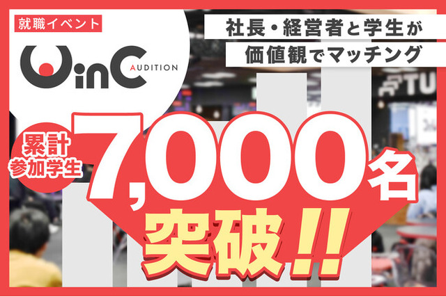 採用コンサルティング事業を行う株式会社プレシャスパートナーズ(本社:東京都新宿区、代表取締役社長CEO:高崎 誠司、以下:プレシャスパートナーズ)は、社長・経営者と学生がマッチングする就職イベント『WinC Audition(ウインクオーディション)』の参加学生数が7,000人を突破しましたことをお知らせいたします。