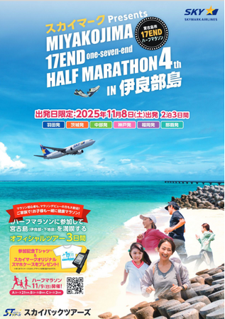 スカイパックツアーズ株式会社(本社:東京都中央区、社長:横山正巳)は、『スカイマークPresents 第4回 宮古島市 17ENDハーフマラソンin伊良部島』各地発公式ツアーを販売開始します。