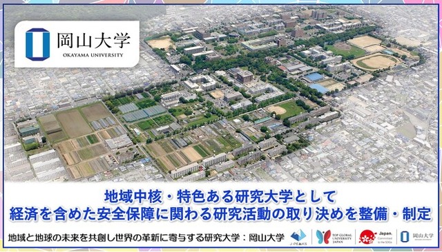 国立大学法人岡山大学(本部:岡山市北区、学長:那須保友)は、「岡山大学における安全保障に関わる研究活動の取り決め」を作成し、2025年6月11日の教育研究評議会での審議を経て、6月26日の役員会において決定しました。