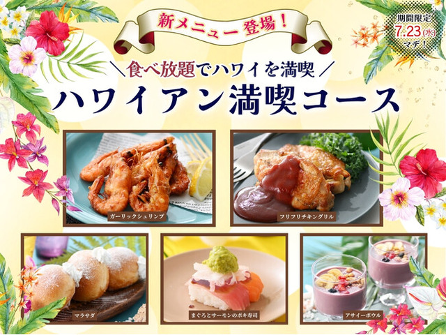そしてこの度、2025年7月3日(木)~ 2025年7月23日(水)の期間限定にて、新たなハワイのメニューを楽しめる「ハワイアン満喫コース」が新登場!