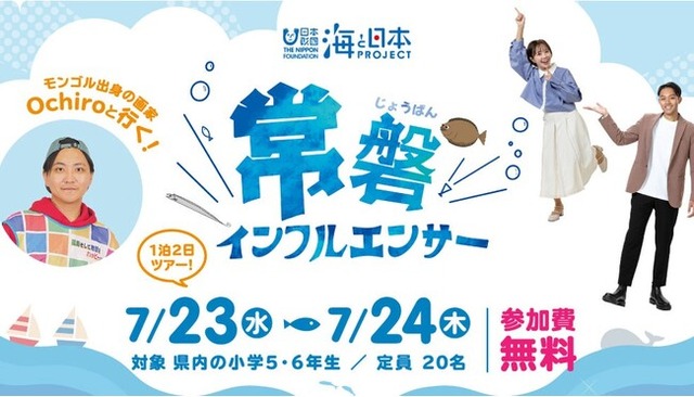 一般社団法人 ふくしま海と緑のプロジェクトは、7月23日(水)~24日(木)に県内小学5・6年生を対象にした1泊2日の体験ツアーイベント「常磐インフルエンサー」を開催いたします。このイベントは、次世代へ豊かで美しい海を引き継ぐために、海を介して人と人とがつながる“日本財団「海と日本プロジェクト」”の一環です。