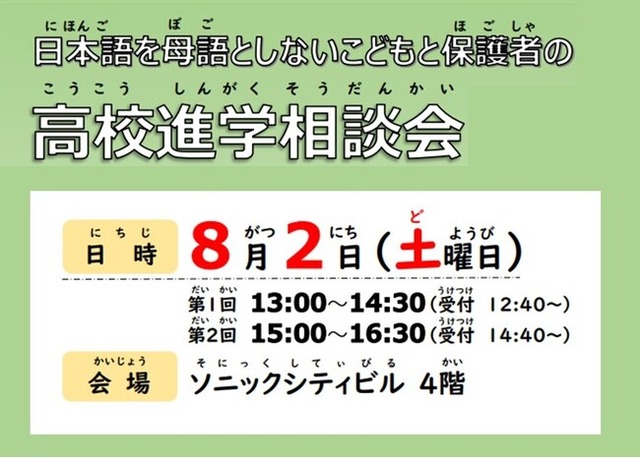 日本語を母語としないこどもたちの高校進学を支援するため、「日本語を母語としないこどもと保護者の高校進学相談会2025」を開催します。