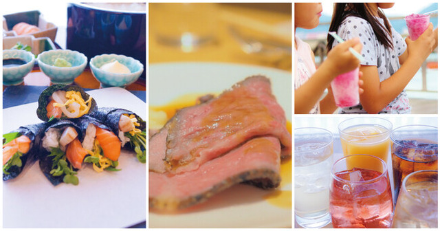 ホテル自慢のバイキングメニューも、フレッシュな素材と心を込めた味付けでご提供します。洋食を中心に約30種類。お腹いっぱい楽しんでいただける幅広いメニューラインナップはもちろん、彩り豊かな料理が勢揃い。ローストビーフは、シェフがカッティングサービスでご提供します。夏休みの思い出のひとつとして、ぜひご家族でお楽しみください。