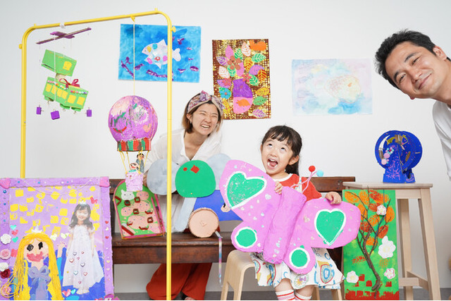 娘さんのアート作品と共に家族写真が撮りたいという素晴らしいアイディアから生まれたセルフフォト