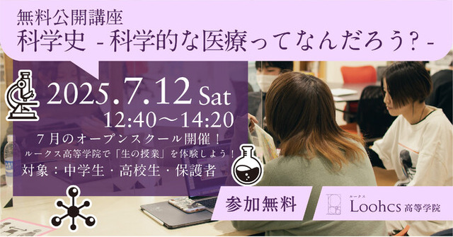 2025年7月12日(土)12:40より、リベラルアーツ教育を提供する通信制高校サポート校・ルークス高等学院(東京都)にて、在校生と一緒に学ぶ公開授業イベント「科学的な医療ってなんだろう?」を無料開催いたします。