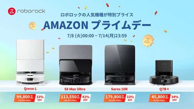 ロボット掃除機やスティック掃除機を製造・開発するBeijing Roborock Technology Co.,Ltd.(本社:中国北京、CEO:Richard Chang)は、2025年7月8日(火)00:00から7月14日(月)23:59までAmazonが開催する「Amazonプライムデー先行セール」および「Amazonプライムデー」に参加し、ロボット掃除機のビッグセールを行います。