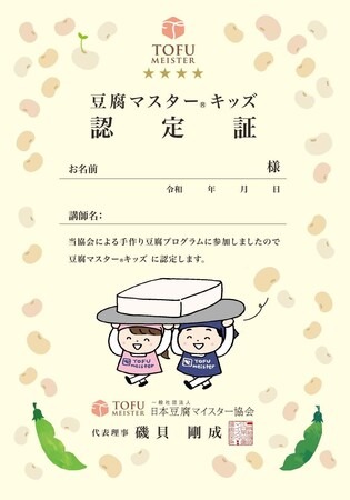 豆腐づくりを教える食育活動を行った際、参加した子どもたちに「豆腐マスター(R)︎キッズ認定証」を授与する仕組みです。