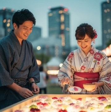 「大手町縁日」は、今年で9回目となる、大人も楽しめる縁日を展開。定番の縁日あそびのほか、焼きそばやりんご飴など日本のお祭りメニューを提供する計8店舗の屋台、キッチンカーが出店します。また現代に合わせて進化し続ける塔の日本旅館「星のや東京」の協力により、「お花すくい」や「宝釣り」の体験、また今年4月にオープンしたばかりの「鮨 大手門」料理長が作る「マグロと牛しぐれ丼」や「鰻の太巻き」の限定メニューを販売します。お仕事帰りでも気軽に立ち寄り、夏祭りの雰囲気を体感いただけます。