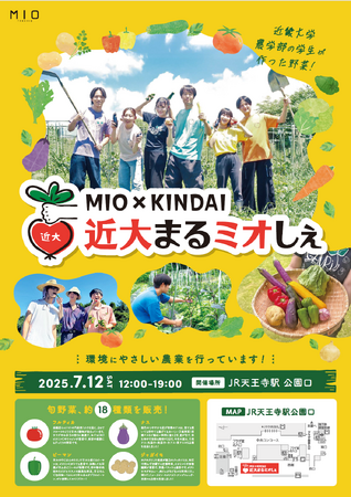 JR西日本SC開発株式会社(本社:大阪市北区梅田)が運営する大型ショッピングセンター「天王寺ミオ」は、近畿大学との産学連携として農学部の学生企画による一日限りの野菜マルシェ「近大まるミオしぇ」を2018年より継続して実施しており、今回で12回目の開催となります。この活動は学生達が企画から販促、運営まで全てに関与し、当社は開催場所として駅前広場の準備、販売に必要なワゴンの貸出、サイネージ等を使用した告知活動を支援しています。