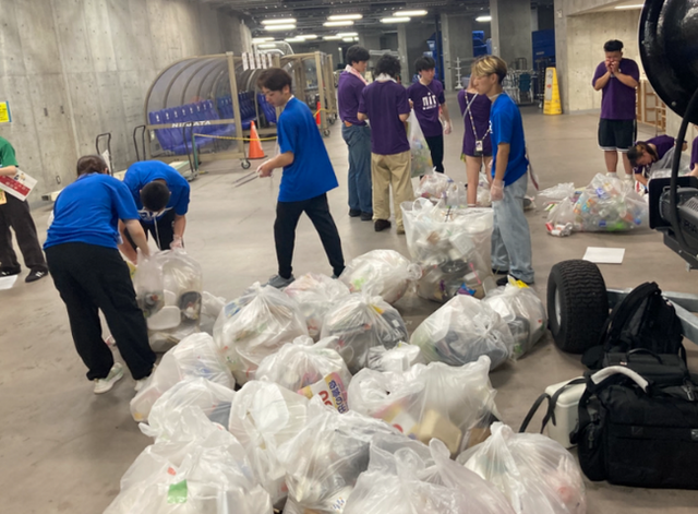 この競技は、8つのチームから総勢80人の選手がスタジアム内を45分間かけて、清掃活動を行い、回収したごみの重さやペットボトルキャップの量を競い合う競技です。観客席を中心とした広いフィールド内での活動は、まさに“運動”と“社会貢献”を掛け合わせたSDGsに沿った挑戦です。