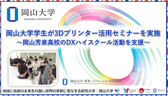 国立大学法人岡山大学(本部:岡山市北区、学長:那須保友)は2025年6月21日、岡山県立岡山芳泉高等学校の依頼を受け、同校の「高等学校DX加速化推進事業(DXハイスクール)」活動への支援の一環として本学の学生が運営する団体MOSAdemy(代表:清水優椰・大学院環境生命自然科学研究科博士後期課程)の学部生と大学院生計6人が、「3Dプリンター活用セミナー」を実施しました。