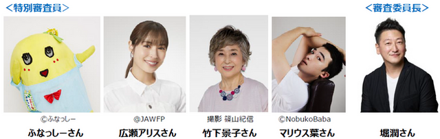 4.新たに「マリウス葉さん」が特別審査員に、審査委員長に「堀潤さん」が就任しました。特別審査員のふなっしーさん、当協会アンバサダーである広瀬アリスさんと竹下景子さんとともに、本コンテストを盛り上げます。