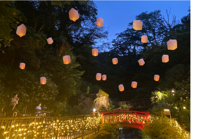 箱根外輪山を一望できる天悠テラスでは「天悠 Summer Concert」を開催します。雄大な自然と壮大な音色が調和する特別な空間でコンサートをお楽しみいただけます。また、8月13日(水)~17日(日)は渓谷庭園にて「ランタンNight Concert」を開催。ランタンの光に包まれながら、生演奏を楽しむ幻想的な時間をお過ごしください。