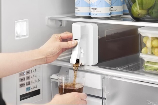 注ぎ口はあけた状態を維持できるので、冷蔵庫から出さずに直接ドリンクを注げて便利です。