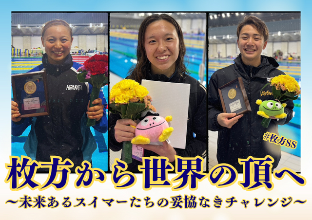 枚方SSは、近年、日本選手権やジャパンオープン等の国内大会のみならず、世界選手権等の国際大会でも優秀な成績を納めた10代から20代前半の若手選手を数多く輩出しているスイミングスクールです。