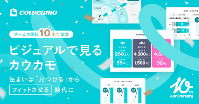 株式会社ツクルバ(本社:東京都渋谷区、代表取締役CEO 村上 浩輝、以下「ツクルバ」)が提供する中古・リノベーション住宅の流通プラットフォーム「cowcamo(カウカモ)」は、2025年6月にサービス開始から10周年を迎えました。これを記念して、「カウカモ」のこれまでの歩みと住まいにおける価値観の変化を振り返る「ビジュアルで見るカウカモ」を公開します。