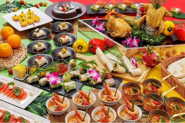 毎年恒例の夏のイベント『ファミリーサマーブッフェ』。今年のメニューは「エスニック」がテーマ。バターチキンカレー&ナンをはじめ、天使の海老のトムヤムヌードル、ポークバックリブBBQソースなど夏にピッタリのメニューをお届けします。お子様には海老フライや唐揚げ、お子様カレーといったキッズコーナーもご用意。またご家族みんなで楽しめる縁日イベントも開催します。
