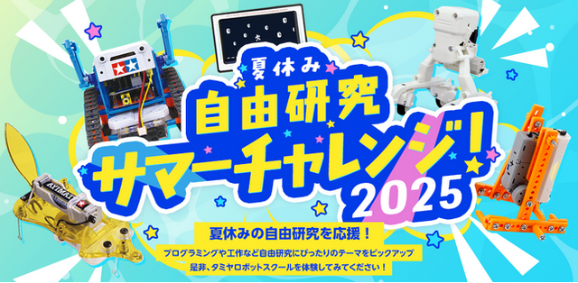プログラミングやロボット工作などタミヤロボットスクールならではのテーマをピックアップし、夏休みの自由研究を応援します。お申し込みは、特設ページよりお願いいたします。詳細につきましては、お近くの教室までお問い合わせください。