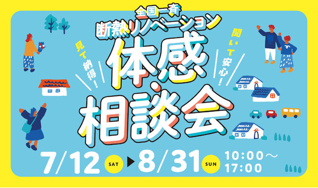 この体験会では高性能リノベーションの普及啓蒙を目的とし、全国の高性能リノベーションへ取り組み始めた全国80か所の工務店さまが、今まで「まるごと断熱リフォーム・SW工法リフォーム」を使用して建設したモデルハウスや実物件、オーナーさま宅にて、夏の熱い時期に断熱リノベーションの涼しさを知ることができる体感会を開催します。あわせて、136か所の工務店さまにて相談会も実施します※2。