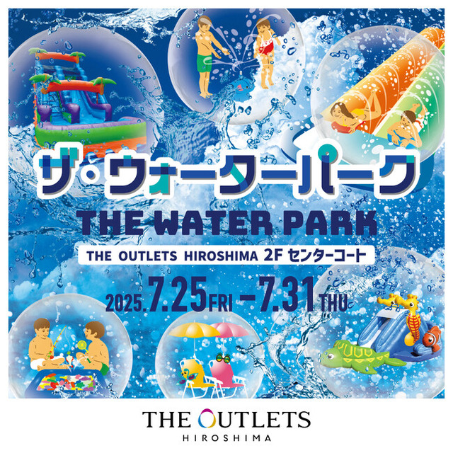 親子・子供のためのイベント企画運営会社の株式会社ワック(本社所在地:東京都品川区、代表取締役社長:栗橋 寿、以下「ワック」)は、THE OUTLETS HIROSHIMA(広島市佐伯区)にて、7月25日(金)から7月31日(木)までの1週間、「THE WATER PARK ザ・ウォーターパーク」を初開催いたします。かわいらしいデザインのウォータースライダー2基と水遊び広場で、親子連れの方にとって熱中症対策をしながら楽しめる広場となります。