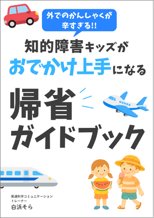 今回リリースされた『知的障害キッズがおでかけ上手になる帰省ガイドブック』は、知的障害で自閉症の娘を育てる白浜そら(発達科学コミュニケーショントレーナー)や実践されたお母さんたちが、実際に「かんしゃくで外出できなかった過去」から、「新幹線・飛行機で帰省などが叶った今」につながった経験をもとにまとめています。