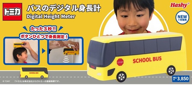 株式会社ハシートップイン(本社:東京都墨田区、代表取締役:橋本貴裕)は、ダイキャスト製ミニカー「トミカ」(発売元:株式会社タカラトミー)とのコラボレーション商品第2弾「デジタル身長計 (バス/トミカ)」を2025年7月上旬に発売いたしました。デジタル身長計は手軽にお子様の身長測定ができるアイテムとして人気のシリーズです。