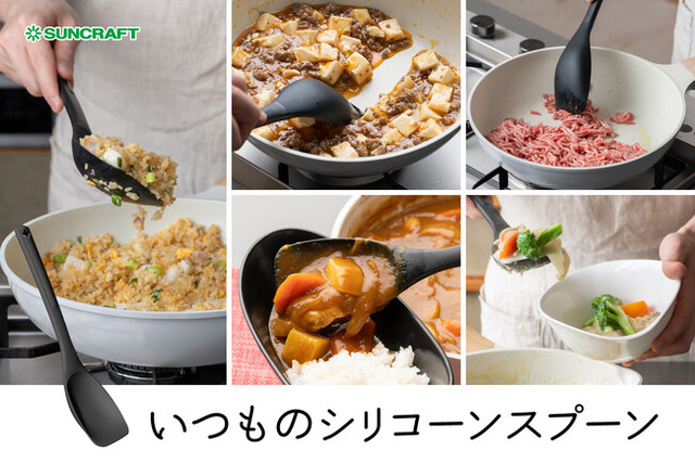 スプーンの先端がフライパンの表面にしっかりと沿うので、汁気のある調理もお任せ。具材と一緒にしっかりかき寄せられます。[画像4: https://prcdn.freetls.fastly.net/release_image/37859/18/37859-18-c20e2e02212aab30eb9ab7a9c25e1305-800x620.jpg?width=536&quality=85%2C75&format=jpeg&auto=webp&fit=bounds&bg-color=fff ]