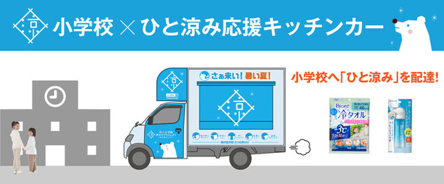 2011年から官民一体となって、熱中症予防の啓発活動を推進する、熱中症予防声かけプロジェクト事務局(一般社団法人ジャパンデザイン:所在地:東京都渋谷区、事務局長/社会起業家:山下太郎、以下:本プロジェクト)は、熱中症弱者である、小学生への啓発活動の一環として夏休み前の7月16日(水)に、千葉県流山市立新川小学校に移動式クーリングシェルター「ひと涼み応援キッチンカー」で訪問し、気象予報士によるセミナーや子供が気を付けるべき熱中症予防などを啓発し、スペシャル応援企業の花王(株)から提供を頂いた暑さ対策商品を全校生徒約330人に無料で提供します。