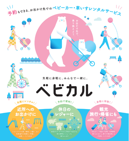 ○株式会社ジェイアール東日本企画は、子育て世代が子供たちと気軽に外出できる社会の実現を目的として、外出先でも便利に利用できる、予約可能なベビーカーレンタルサービス「ベビカル」を展開しています。