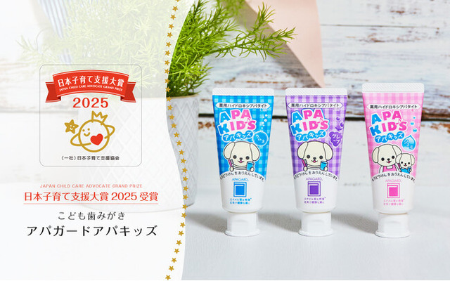 株式会社サンギ(本社:東京都中央区築地、代表取締役社長:ロズリン・ヘイマン)が展開する、美白高機能歯みがき売上No.1*シリーズ「アパガード」のこども歯みがき「アパガード アパキッズ」が、日本子育て支援大賞2025を初めて受賞いたしました。「生えはじめ期」の乳歯に仕上げみがきもしやすい無発泡ジェルタイプと、「生えかわり期」の乳歯と永久歯にみがきやすい泡立ち少なめ(低発泡)のペーストタイプの2種類をラインアップ。発育段階に合わせて子どもが歯みがきに慣れやすい商品展開や工夫がなされていることが受賞につながりました。