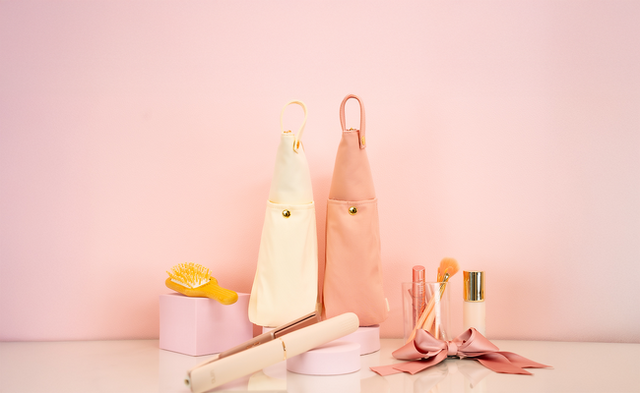 ヘアアイロンポーチは、ホワイトとピンクミルクティーの2色展開。Lenaのヘアアイロンのイメージにあわせた大人可愛いデザインに仕上げています。ポーチ内部は耐熱仕様に加工しており、ヘアアイロン使用直後でも収納可能。これからの季節に増える、帰省や旅行、出張やちょっとしたお出かけ先へ持ち運ぶ時に便利です。また、自宅での保管時にはポーチ上部のループをフックにかけるなどすることで、洗面所にも吊り下げて収納できます。