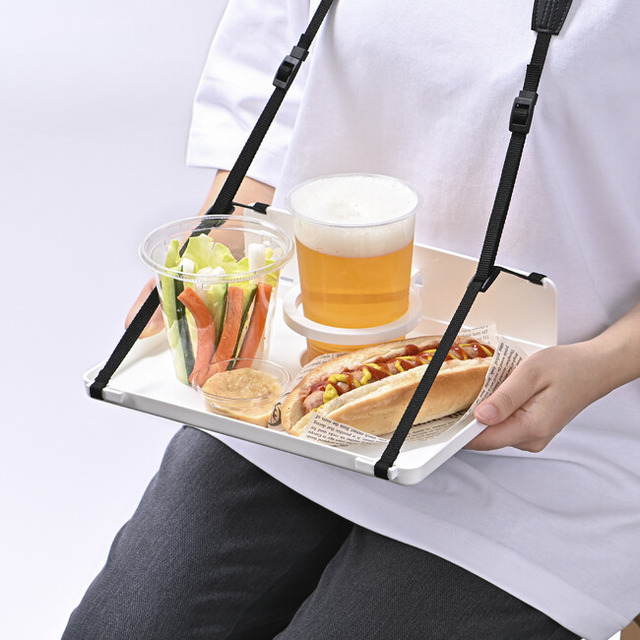 「買ったビール・お弁当を置く場所に困る」「手が塞がって拍手ができない」といった、スタジアムでの飲食時の不便を解消します。