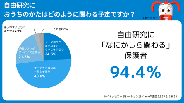 自由研究に、なにかしら関わる保護者は94.4%