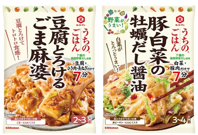 キッコーマン食品株式会社は、8月4日に、「キッコーマン うちのごはん おそうざいの素」シリーズの新アイテム「豆腐とろけるごま麻婆」と「豚白菜の牡蠣だし醤油」を全国で新発売します。