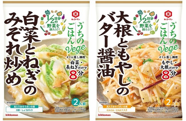 キッコーマン食品株式会社は、8月4日に、1/2日分の野菜(*)を手軽にとることができる「キッコーマン うちのごはんVege おそうざいの素」シリーズの、「白菜とねぎのみぞれ炒め」と「大根ともやしのバター醤油」を全国で新発売します。