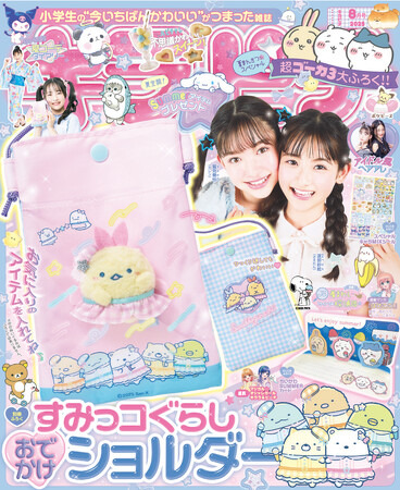 7月15日(火)に発売する『キラピチ8月号』の別冊付録は、すみっコぐらしおでかけショルダー。本誌ではちいかわ、すみっコぐらしなど人気キャラクターの連載や、トレンドアイテムを使った夏のファッション情報、アイドル風ヘアアレンジレシピなどが満載。夏休みにチャレンジしたい、自由研究のヒントが隠れたスイーツレシピも紹介しています。