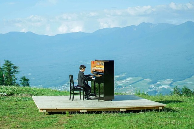 八ヶ岳を一望できる天空ピアノの特設ステージ