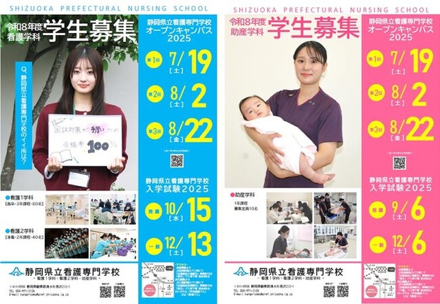 本校は、静岡県内で唯一の県立看護専門学校として、看護・助産の道を志す皆さんの夢を全力で支援しています。本年度のオープンキャンパスでは、本校を知ってもらうだけでなく、模擬授業や「学生と語る会」など、体験できるプログラムを多数用意しています。ぜひご参加ください!