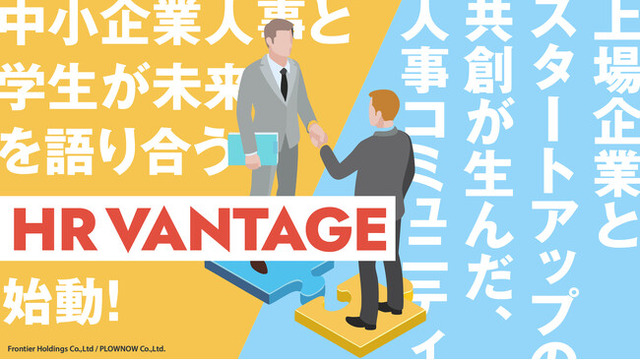 採用施策の成功を背景に成長を続ける株式会社フロンティアホールディングス(TOKYO PRO Market 上場)と、採用支援に特化したスタートアップ株式会社PLOWNOWは、2025年8月より、中小企業の人事と学生がフラットに対話できる共創型コミュニティ「HR VANTAGE(ヴァンテージ)」をスタートします。