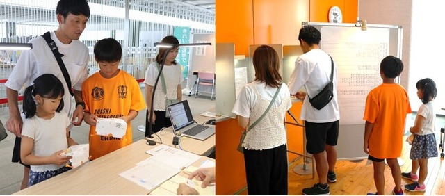 期日前投票所での様子。選挙を重ねるごとに、子どもを連れて投票所に来場する家族が増えている。