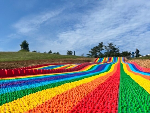 びわこ箱館山では、今夏に新登場する全長50mの大自然を横切る『虹色スライダー』を始め、アルプスアドベンチャーやジップライン、バギー体験など大自然を満喫する夏にぴったりのアクティビティを多数ご用意しています。また、無料でお楽しみいただける「プレイゾーン」エリアでは、水遊びビーチや、スノーマウンテンなどをご用意しており、小さなお子様も楽しめるスペースとなっています。ご家族や友人と自然アクティビティをご堪能ください。■虹色スライダー:全長50mのカラフルなレインボーカラーのスライダーを