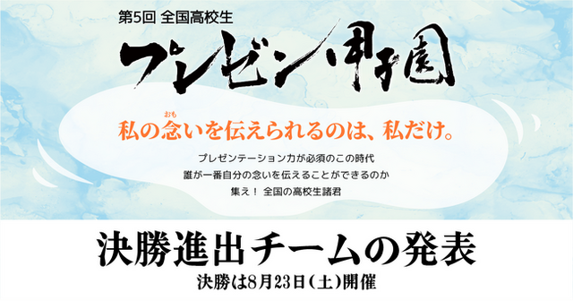 ーション協会(本社:東京都台東区、代表理事:前田鎌利)と共催で、全国高校生プレゼン甲子園の決勝大会を2025年8月23日(土)に開催します。